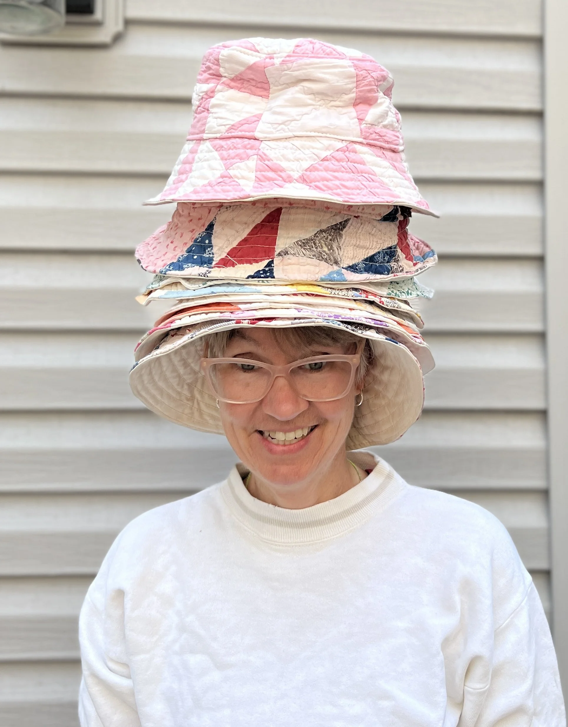 To be honest, these bucket hats are not a quick project (see my video here on how I make them), but since they use up really oddly shaped scraps, I’m going to stick with them.